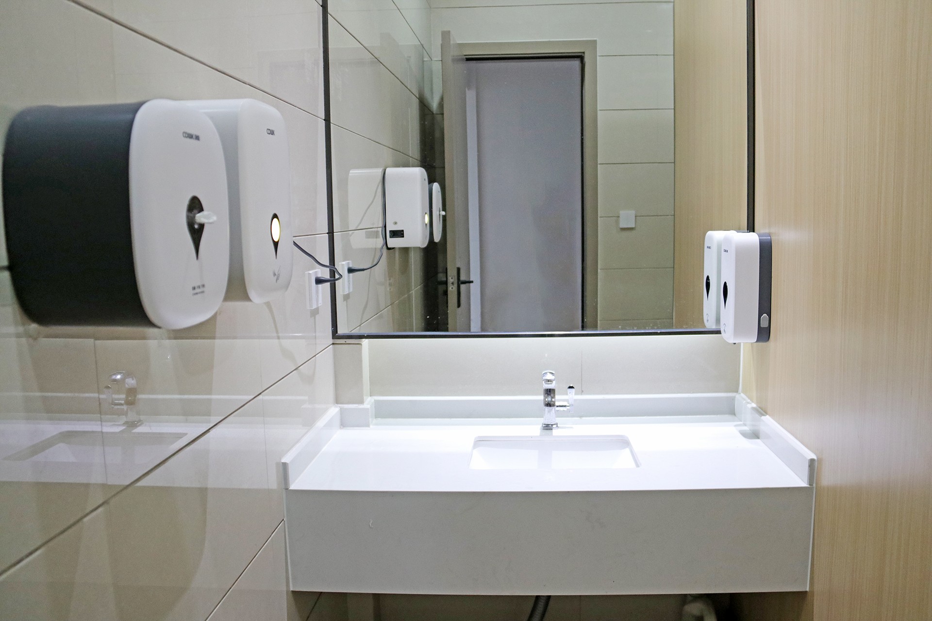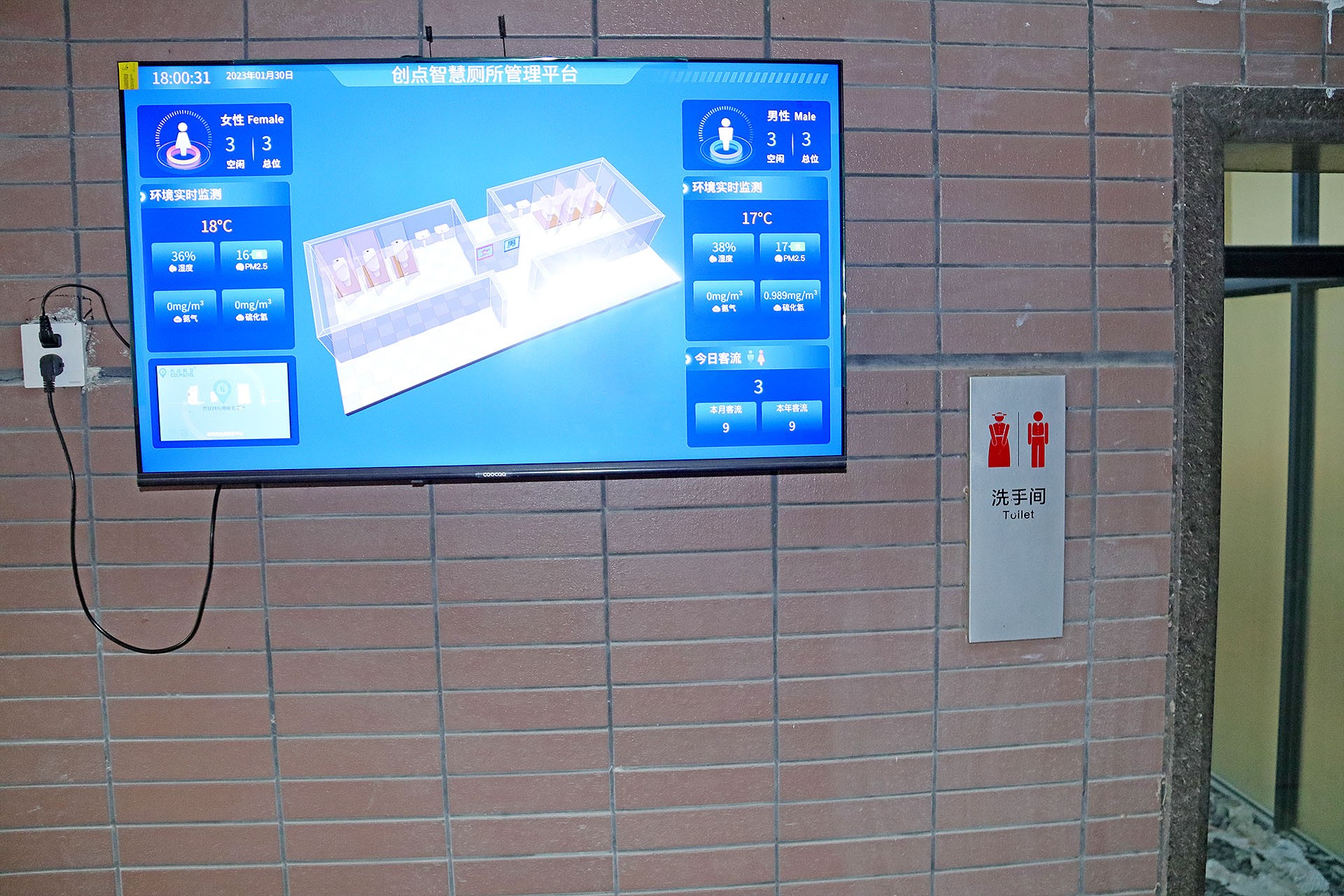 人們通過屏幕可以看到當(dāng)日的人流量、當(dāng)前的使用情況外,還能實(shí)時監(jiān)控廁所內(nèi)氨氣和硫化氫等有臭/毒氣體與環(huán)境濕度與溫度,自動控制空調(diào)、排風(fēng)系統(tǒng)結(jié)合自動噴香機(jī)調(diào)整空氣環(huán)境,營造干凈舒適的廁所環(huán)境。