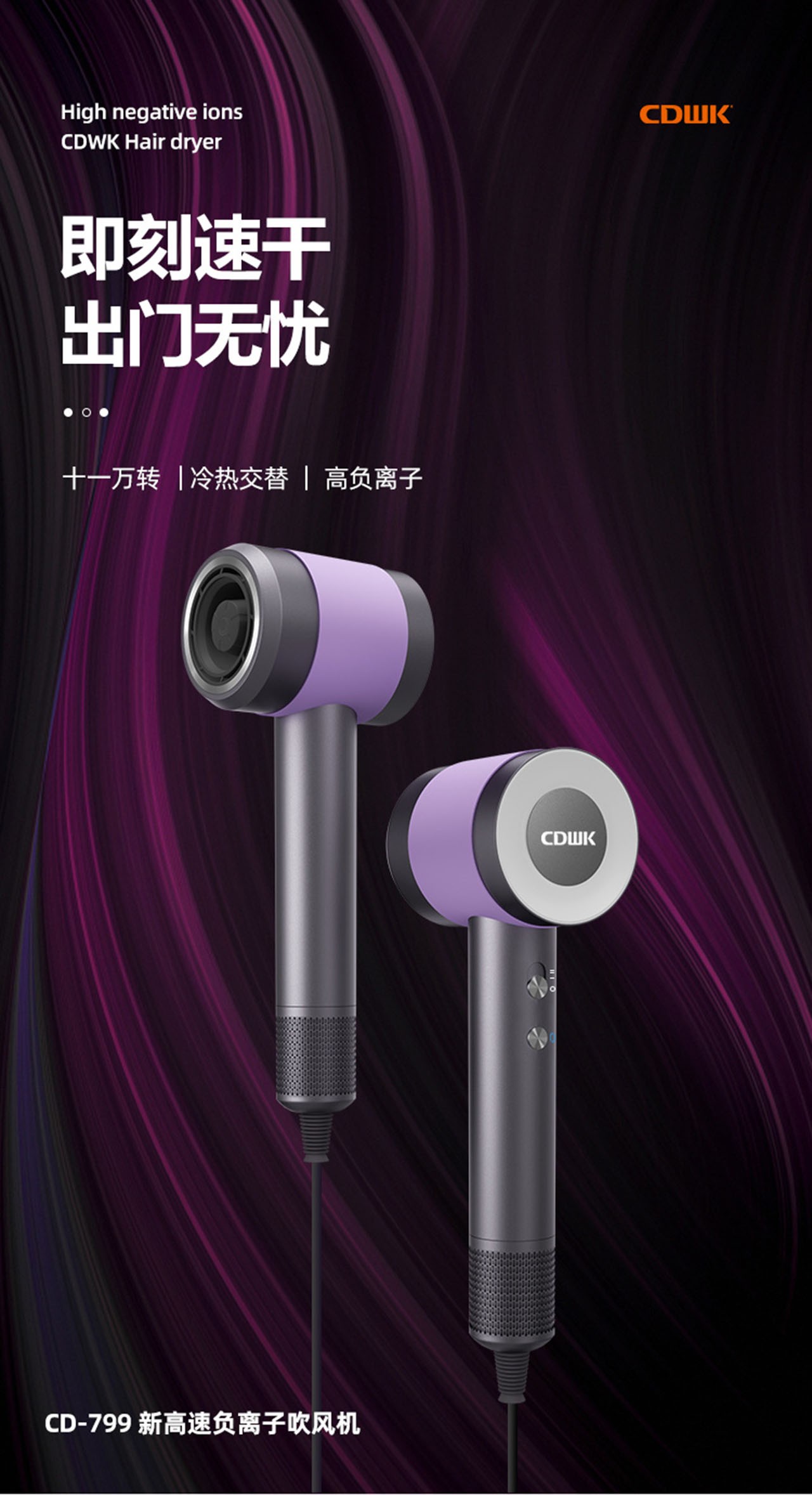 新品上市 | CDWK創(chuàng)點高速負離子吹風機,智能黑科技打造全新干發(fā)體驗!