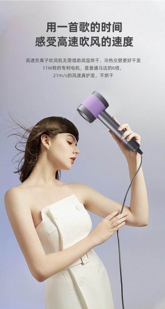 高速負離子吹風機無需借助高溫烘干,冷熱交替更好干發(fā);11W轉(zhuǎn)的專利電機,強勁動能,是普通馬達的6倍,大大地縮短了吹發(fā)時間,短發(fā)吹干僅需1-3分鐘,齊肩款中長發(fā)吹干僅需3-5分鐘,及腰款長發(fā)和卷發(fā)吹干也只要5-8分鐘;21m/s的風速真護發(fā),鎖住頭發(fā)發(fā)芯健康含水量,還原頭發(fā)強韌、光澤、順滑形象,給予不一樣的干發(fā)體驗。