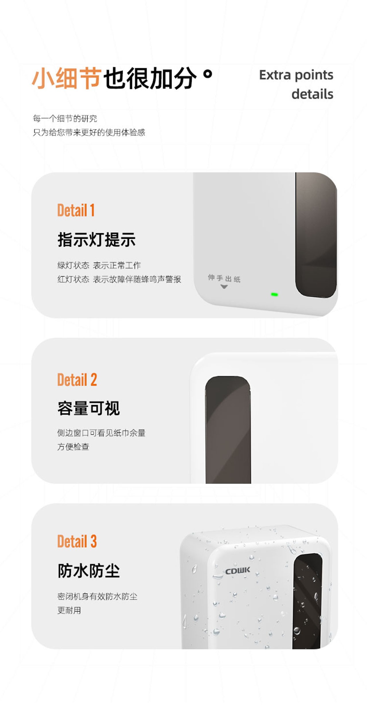 新品上市 | CDWK創(chuàng)點感應(yīng)廁紙切紙機,智能感應(yīng)的衛(wèi)生新體驗!