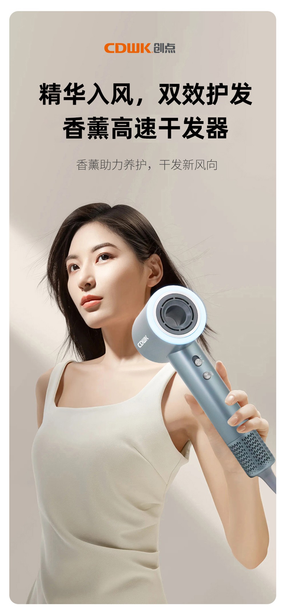 新品上市 | CDWK創(chuàng)點香薰高速干發(fā)器,雙效護發(fā)更柔順!