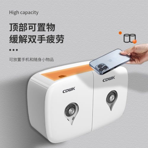 ABS堅固設計,觸感順滑,具備防水全方位保護、可清晰看到紙巾用量等人性化設計,環(huán)保又省紙!頂部加高設計,便于放置手機和隨身小物品,優(yōu)化用戶體驗;更有鎖扣防盜設計加強管理,拒絕“伸手黨”。