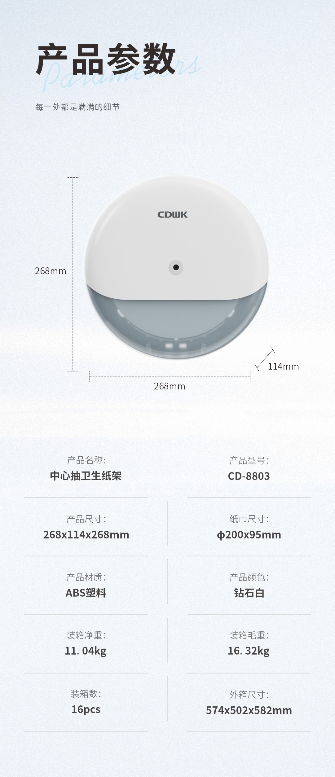 紙巾尺寸:Φ200x95mm
